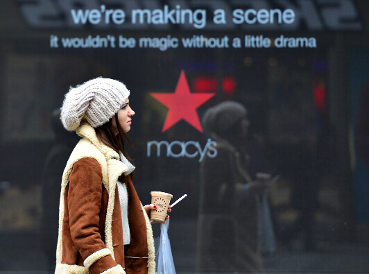(美国梅西百货将关闭近40家零售店1月12日,一位市民从美国纽约曼哈顿梅西百货旗舰店门前走过。