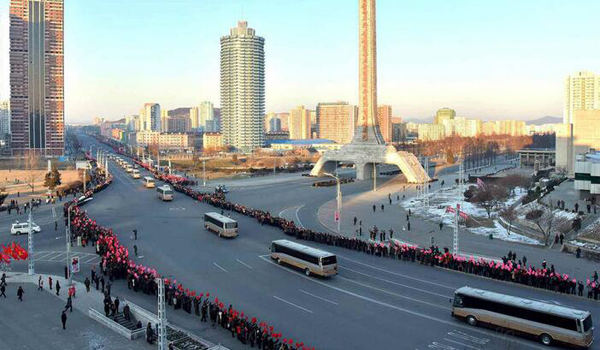 2016年1月14日消息,據朝鮮《勞動新聞》14日報道,朝鮮13日動員10萬名平壤市民為“氫彈”試爆貢獻者在大路邊舉行歡送儀式,向核試立功者給予厚待。