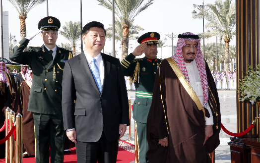 会谈前,习近平出席萨勒曼国王在王宫办公厅广场举行的隆重欢迎仪式。