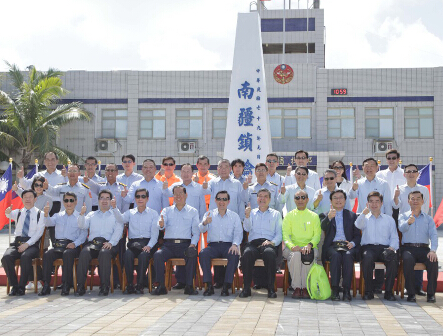马英九(中)28日前往太平岛视察,到岛上南沙医院视导时,官兵列队欢迎。