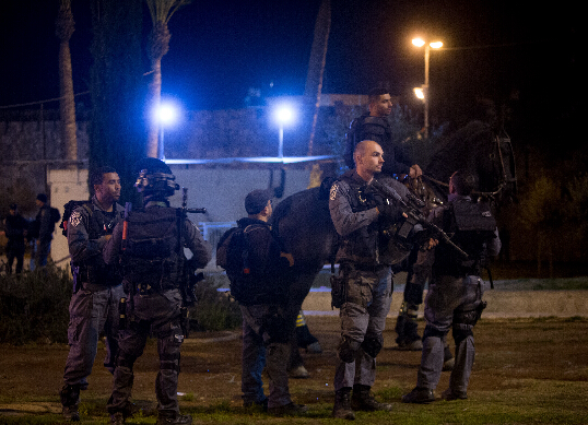2月14日,在耶路撒冷老城大马士革门附近,以色列安全人员聚集在袭击事件现场。