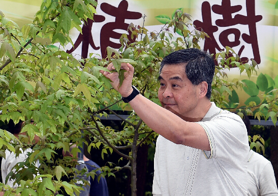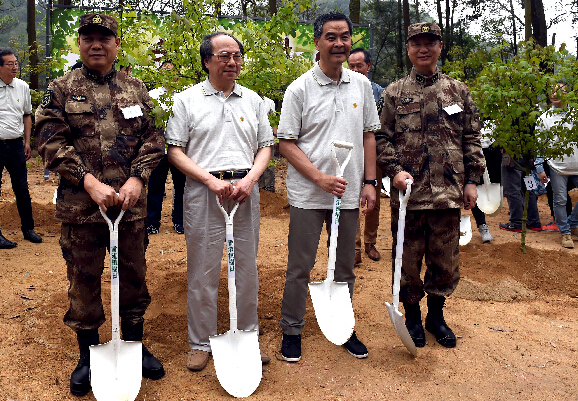3月19日,2016香港植树日活动在元朗大棠举行,解放军驻港部队700名官兵与香港社会各界共约1800人一道参加植树活动,当日共栽种树苗8000棵,树苗品种包括枫香、大头茶、岭南山竹子、山蒲桃、牛耳枫等。香港植树日活动自1998年初开始举办,迄今已连续举办19年。图为香港特区行政长官梁振英参加植树。