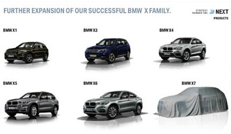 在年度報告中,寶馬給出了公司當下的SUV陣容,除了寶馬X1、寶馬X3、寶馬X4、寶馬X5和寶馬X6之外,還有被薄布覆蓋的寶馬X7圖,在遮蓋掉外形細節的同時,能夠讓人一睹寶馬X7的大致輪廓。
