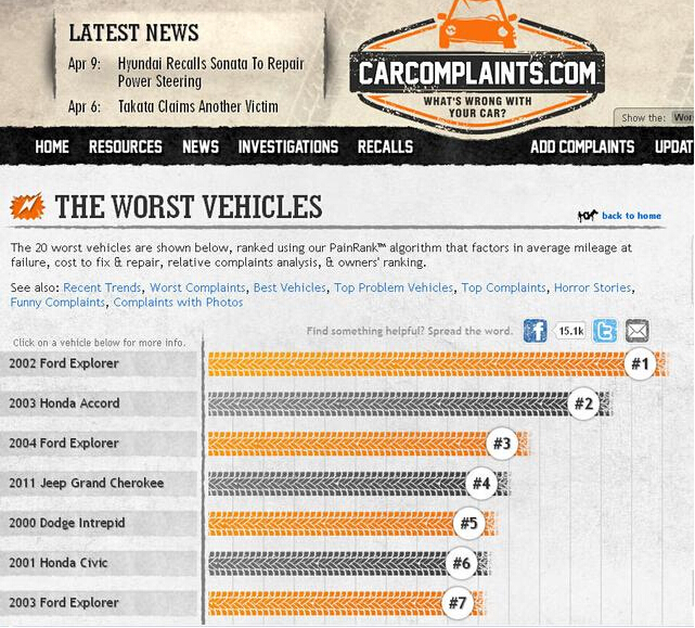如上圖所示,美國知名汽車網站carproblem匯集的投訴榜單中,前十款車中福特就占據了三項,由此可見,福特海外也同樣存在質量缺陷、安全隱患等問題。