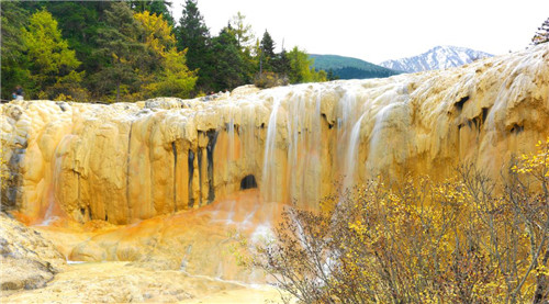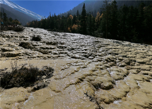 长达1.3公里的钙华滩流——金沙铺地