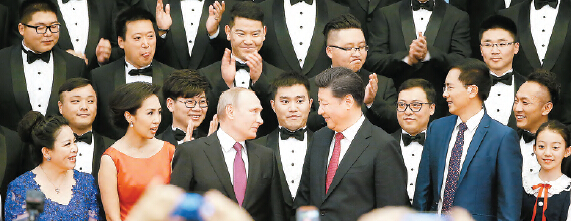 會談結束后,習近平和普京出席了《中俄睦鄰友好合作條約》簽署15周年紀念大會暨「中俄友誼之夜」文藝演出,并致辭。紀念大會前,兩國元首還共同出席了2016年中俄主流媒體聯合采訪活動啟動儀式。