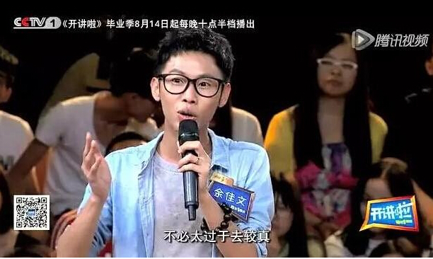 余佳文成名于央視的《青年中國說》。他在節目里說超級課程表的盈利能力一直比較好,明年要拿出一個億利潤分給員工。這個宣言引起了轟動,也為他贏來了“霸道總裁”的稱號。然而,在一年之后的《開講啦》里,余總裁卻畫風突變,宣布認慫,并且笑嘻嘻地說出了自己的另一句名言,“年輕人的企業就是玩出來的。”