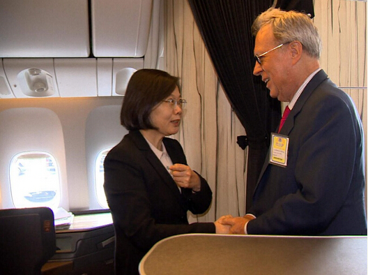 蔡英文在美國西部時間1日過境洛杉磯,與美方多名政要互動,包括與美國前總統克林頓、聯邦眾議院議長瑞安(Paul Ryan)通電話,和日裔美籍眾議員本田實、美國在臺協會(AIT)主席薄瑞光等人早餐會,也與多名國會議員進行會談。