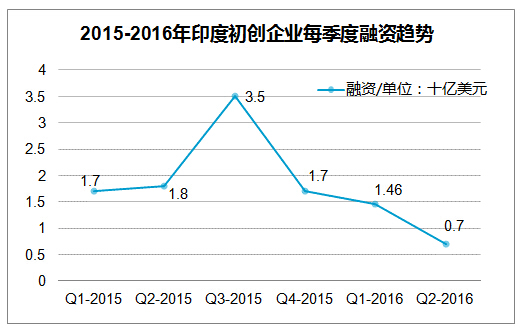 這也就解釋了印度14年和15年出現的投資熱現象。2014年一年,印度總共完成了300筆投資交易,總價值50億美元。而2015年第一、第二和第四季度保持了相似的投資數量,分別為17億、18億和17億美元,第三季度投資甚至出現井噴,達到38億美元。
