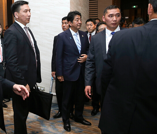 16、應約會見,安倍早到了。新華社龐興雷攝