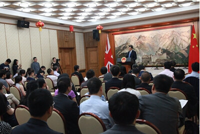 據中國駐英國大使館網站消息,7月19日,劉曉明大使就所謂南海仲裁庭仲裁結果舉行中外記者會,有23家中外媒體近40名記者出席。