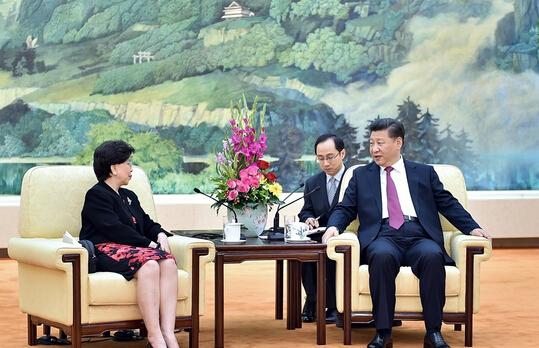 7月25日,國家主席習近平在北京人民大會堂會見世界衛生組織總干事陳馮富珍。 新華社記者 李濤 攝