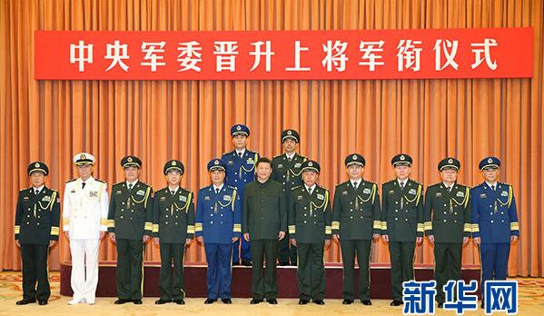 中央軍委晉升上將軍銜儀式在京舉行 習近平頒發命令狀并向晉銜的軍官表示祝賀