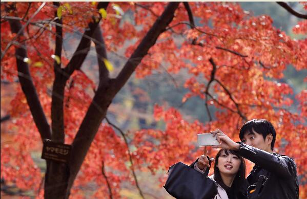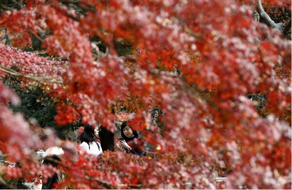 2016年12月5日,人們在日本東京的一座公園遊覽。 新華社/美聯