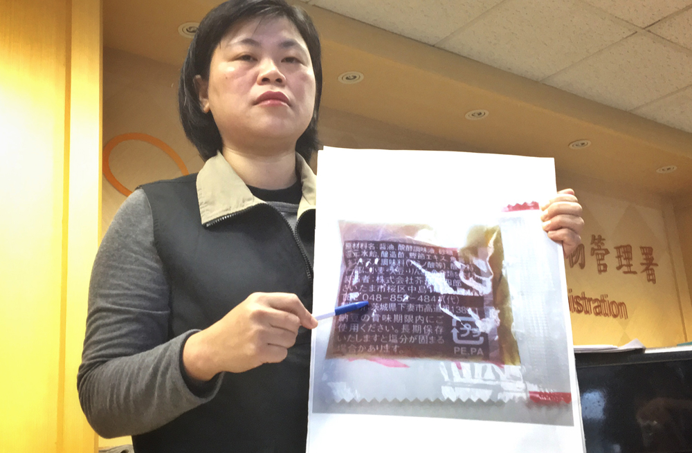 圖:台灣食藥署11日針對吉野家納豆內附醬油包疑似日本核災區茨城縣製造舉行記者會/中央社
