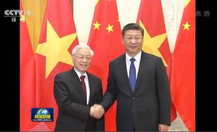 央視網消息(新聞聯播):歡迎儀式后,中共中央總書記、國家主席習近平在人民大會堂同越共中央總書記阮富仲舉行會談。