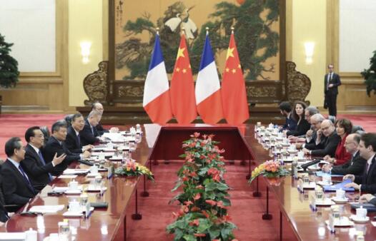 李克強在會談上表示,中法關系發展良好,一直走在中國同西方國家關系的前列。中方愿同法方一道,始終從戰略高度看待和把握中法關系,秉持相互尊重、平等合作、互利共贏的理念發展好兩國關系。中法同為聯合國安理會常任理事國,擁有廣泛共同利益和責任。在當前復雜多變的國際政治經濟形勢下,中法有必要進行深入溝通協調,深化各領域合作,共同應對風險挑戰,向世界發出致力于維護和平穩定、促進發展的強烈信號,以穩定性應對不確定性。