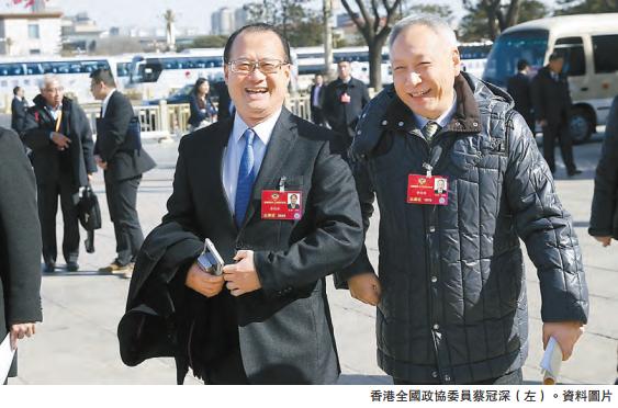 蔡冠深強調,「一國兩制」在香港實踐的20年是成功的,經濟方面,香港是一個比較成熟的經濟體,經濟成長按照規律在發展;政治方面,在「一國兩制」的問題上,談「兩制」多了一點,而「一國」少了一點,香港青年對「一國兩制」的認識也出現重「兩制」而輕「一國」的問題,甚至出現了個別「港獨」聲音。