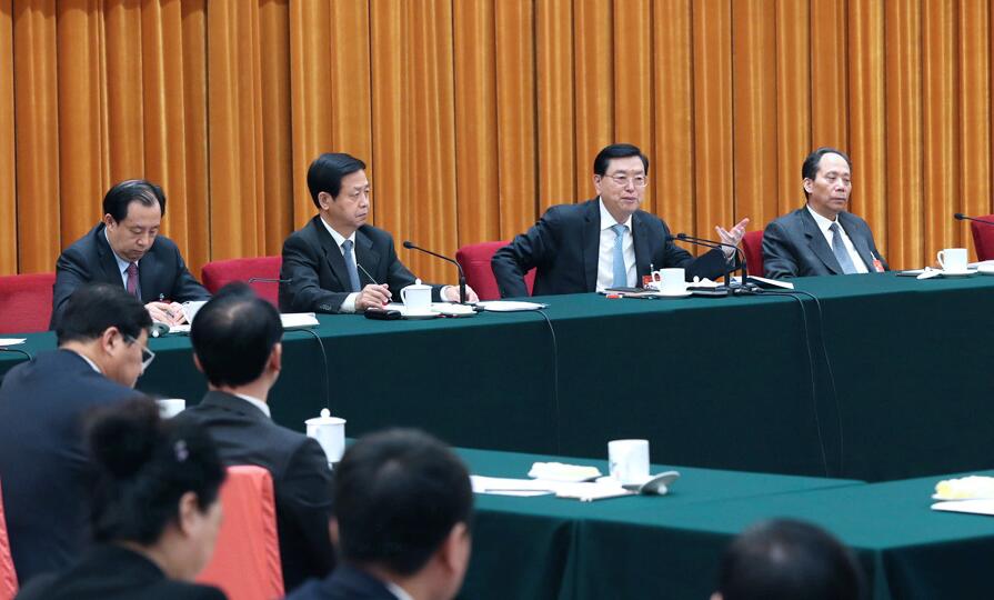 3月8日,中共中央政治局常委、全國人大常委會委員長張德江參加十二屆全國人大五次會議黑龍江代表團的審議。新華社記者 馬占成 攝