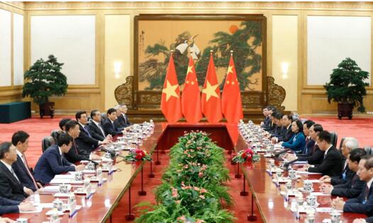 習近平指出,中越是山水相連的鄰邦,也是志同道合的伙伴。中國堅定支持越南走符合本國國情的社會主義道路,也將堅持與鄰為善、以鄰為伴方針,堅持親誠惠容理念,推動中越關系持續健康穩定向前發展。