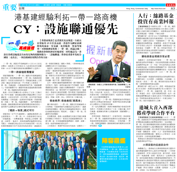 CY:設施聯通優先 港基建經驗利拓一帶一路商機