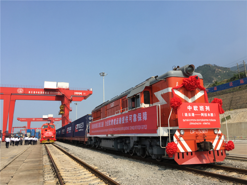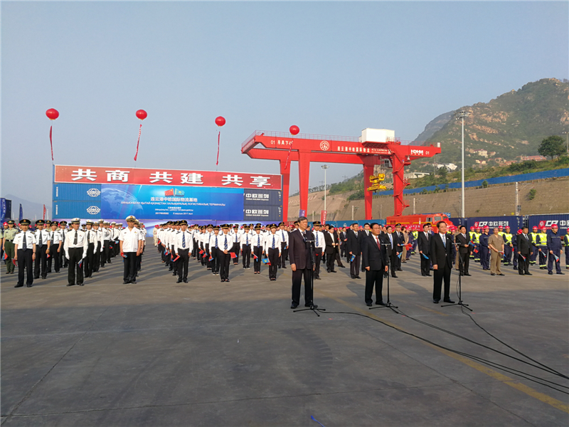 跨國視頻連線中,江蘇省委書記李強,中遠海運集團董事長許立榮、中鐵總公司總經理陸東福分別就亞歐跨境運輸事項匯報了港口、航運、鐵路方面的準備情况。在「霍爾果斯東大門」無水港現場,從連雲港發往中亞、歐洲的集裝箱正進行換裝作業。隨后,阿拉木圖州州長巴塔洛夫及哈國鐵公司物流副總裁葉留巴耶夫分別向哈國總統納扎爾巴耶夫視頻匯報了「霍爾果斯東大門」經濟特區基礎設施建設情况及無水港項目投入運營情况。伴隨着連雲港中哈物流基地、「霍爾果斯東大門」無水港集裝箱班列的發出,以中哈為代表的、兩國多方共同參與的亞歐跨境運輸物流活動將全面展開。