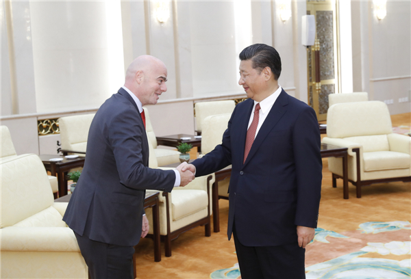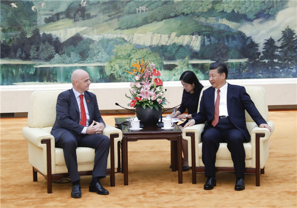 习近平赞赏因凡蒂诺就任国际足联主席后致力于足球事业发展、关注中国足球事业,强调中方将积极支持国际足联工作,愿为推动世界足球运动发展做出应有贡献。中国同国际足联合作前景广阔。