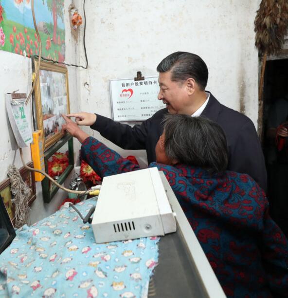 習近平沿著村里崎嶇不平的土路一連走進三戶村民家中,察看他們的生活環境,了解家庭致貧原因和穩定增收的可行性,同干部群眾一起共商脫貧攻堅大計。總書記肯定了當地通過易地搬遷改善村民生活條件的思路,要求配套扶貧措施要跟上,使貧困群眾不僅改善居住條件,還能穩定增收。
