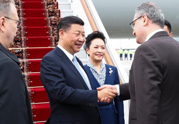當地時間下午2時30分許,習近平乘坐的專機抵達莫斯科伏努科沃專機機場。習近平和夫人彭麗媛步出艙門,受到俄羅斯政府高級官員熱情迎接。