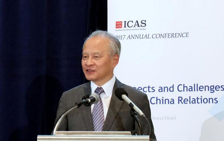 崔天凱表示,雖然中美合作取得了很多積極成果,但中美關系的發展從來不是一帆風順的。我們必須高度重視中美關系面臨的困難和挑戰,全力防止任何可能導致中美關系“脫軌”的風險。
