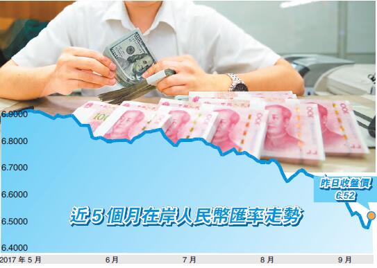 興業銀行認為,十九大前人民幣匯率維穩的可能性較大,今年第四季度、明年第一季度貶壓較大但整體可控。市場預期的改善源自於內地基本面穩定向好、美元牛市基本宣告終結、十九大內生維穩訴求,以及結匯行為使得升值預期自我強化。