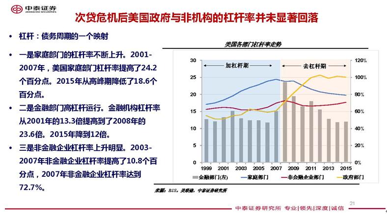 再看看美國和日本經濟。在發生金融危機之後,兩國政府杠杆率均出現上升,居民杠杆率則明顯回落,但非金融企業部門的杠杆率則沒有出現明顯的回落。因此,從全球來看去杠杆都是國際性難題,不要認為想去就能去得掉,從而把金融監管的加強視作股市或樓市的利空因素。