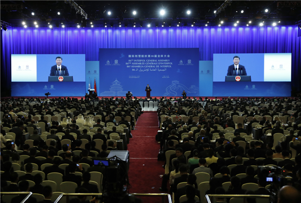 习近平在国际刑警组织第八十六届全体大会开幕式上的主旨演讲(全文)