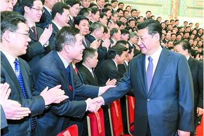 2015年2月28日,党和国家领导人习近平、刘云山等在北京人民大会堂会见第四届全国文明城市、文明村镇、文明单位和未成年人思想道德建设工作先进代表。(图片来源:新华社)