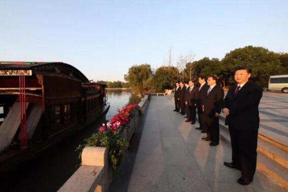 此行常委集体到访,习近平指出,上海党的一大会址、嘉兴南湖红船是我们党梦想起航的地方。我们党从这里诞生,从这里出征,从这里走向全国执政。这里是我们党的根脉。