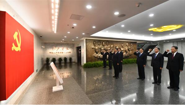 当天上午,习近平带领李克强、栗战书、汪洋、王沪宁、赵乐际、韩正,从北京乘专机来到上海,到兴业路76号集体瞻仰中共一大会址;