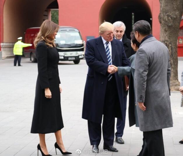 国家主席习近平和夫人彭丽媛8日下午在故宫博物院迎接来华进行国事访问的美国总统特朗普和夫人梅拉尼娅,两国元首夫妇在宝蕴楼简短茶叙。