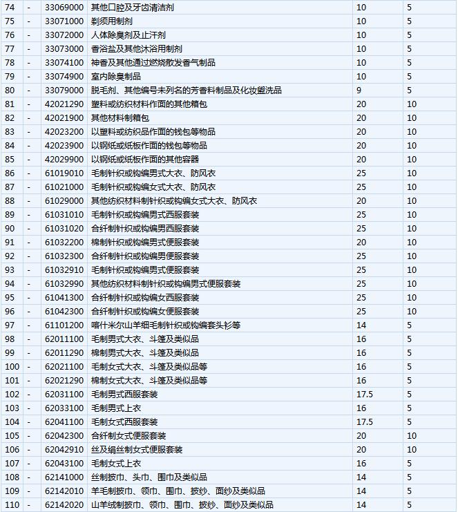 根据国务院要求,自2015年以来,为满足居民消费升级需要,合理增加与人民生活密切相关的一般消费品进口,我国已陆续降低了部分服装、箱包、鞋靴、特色食品和药品等消费品的进口关税。在此前降税的基础上,本次进一步降低消费品进口关税,范围涵盖食品、保健品、药品、日化用品、衣着鞋帽、家用设备、文化娱乐、日杂百货等各类消费品,共涉及187个8位税号,平均税率由17.3%降至7.7%。