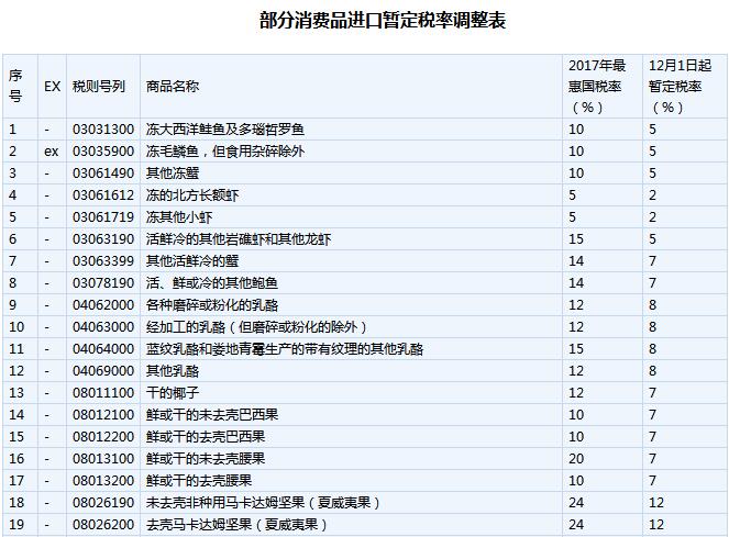 经国务院关税税则委员会审议通过,并报国务院批准,我国将对部分消费品进口关税进行调整。自2017年12月1日开始实施。