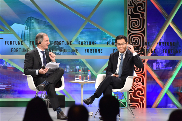 中國兩大互聯網企業代表——阿里巴巴集團董事局主席馬雲和騰訊控股有限公司董事會主席馬化騰,當天均出席了2017《財富》全球論壇主題會議,并與《財富》雜誌總裁、時代集團首席內容官穆瑞瀾進行現場訪談。在各自出席主題會議時,「二馬」都表達了對對方的贊賞、感叹競爭壓力大、解讀「賦能」,頻爆「金句」。由於兩人都姓馬,主持人一度打趣問馬化騰二人是否親戚?馬化騰趕緊說:沒有沒有,但與馬雲認識多年,以前都是互聯網小弟。而馬雲稱與馬化騰是好友,并稱赞騰訊是偉大企業,技術上與眾不同,「雖然兩家公司存在競爭,但競爭不代表憎恨,要尊重競爭對手,汲取對方所長」。