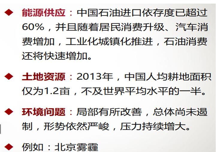 第三,節能減排已經成為全球的趨勢。除美國外,全球所有的國家和地區都加入“巴黎氣候協定”。但與此同時,我們看到北京的霧霾在全世界也很出名。