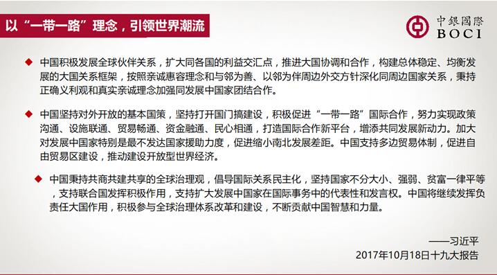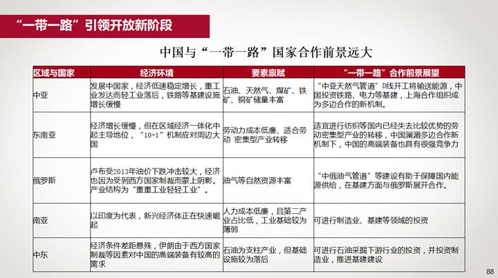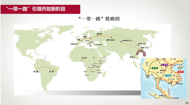 目前要向高新技術投資的話,科技創新集中地第一是深圳,第二是北京中關村,最后應該是成都。正因為西部地區高速發展,向西開放就成為潮流趨勢,“一帶一路”也隨之孕育而生。“一帶一路”最早開通的班列起點就是在重慶,從此以后全國各處通過這條路線向國外開出班列。甚至是浙江義烏,廈門在金磚國家會議期間向歐洲開出班列。現在的班列已經從4000列上升到5000列,這樣的上升僅僅在三個半月內就完成了。一帶一路這條路在2000年前就已經有了,為什么到現在突然又繁華了起來,關鍵是西部經濟的發展,有了對外發展的支撐和需求。這次十九大專門強調是東西同時開放,陸海相濟,中國經濟全面開放。由此西部從改革開放末端轉變成為改革開放前端。如果要關注投資,要關注一帶一路國內段。