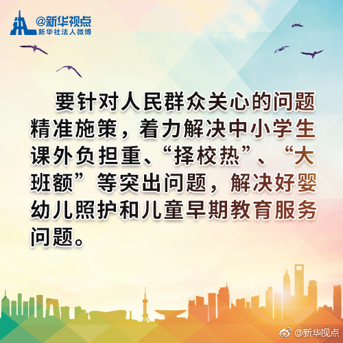 会议指出,要针对人民群众关心的问题精准施策,着力解决中小学生课外负担重、“择校热”、“大班额”等突出问题,解决好婴幼儿照护和儿童早期教育服务问题。会议指出,要注重解决结构性就业矛盾,解决好性别歧视、身份歧视问题。统计显示,过去5年中国累计新增就业超过6500万人。