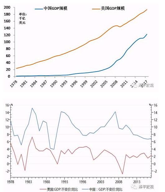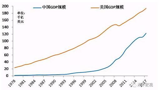 2017年中国GDP规模达到82.7万亿元,相当于12.2万亿美元,为世界第二大经济体。而且,中国离世界第一大经济体美国(2017年GDP为19.3万亿美元)的距离在快速缩小。2017年中国GDP增速为6.9%,虽然低于1978-2008年增速换挡前高增长时期的年均9.8%,但仍远超美国的2.3%。