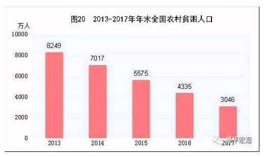 按照每人每年2300元(2010年不变价)的农村贫困标准计算,2017年,年末农村贫困人口3046万人,比上年末减少1289万人;贫困发生率]3.1%,比上年下降1.4个百分点。