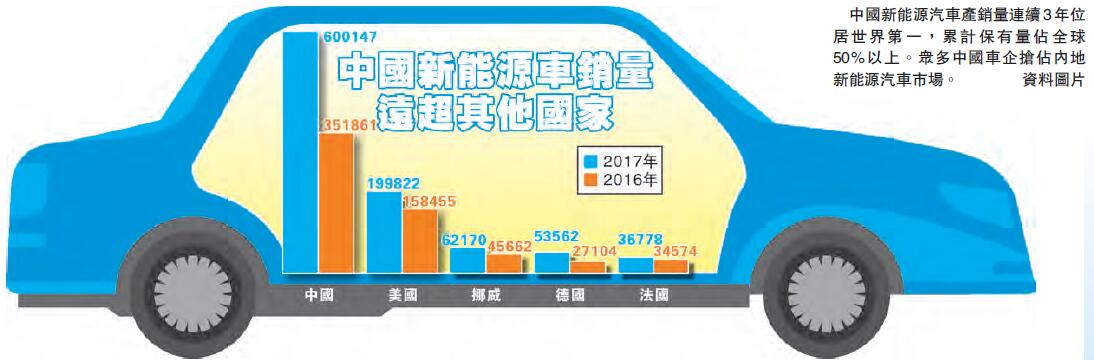 得益於政府積極推動和巨額財政補貼,中國在新能源汽車領域取得了不俗的戰績,市場規模在不斷擴大。中國汽協公開數據顯示,2017年中國新能源汽車產銷量分別為79.4萬輛和77.7萬輛,連續3年位居世界第一,中國新能源汽車累計保有量已經達到180萬輛,佔據全球市場保有量比例50%以上。其中,中國龍頭企業比亞迪在新能源汽車產品線上應用廣泛,包括乘用車、商用車等都處於世界領先地位。