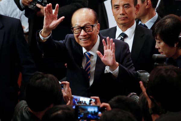 李嘉誠在昨日長和業績會后與大家揮手話別。