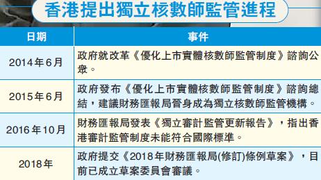 今年1月,政府就《財務匯報局(修訂)條例草案》(下稱:草案)刊憲,讓財匯局轉型成為香港全面獨立核數師監管機構。草案除了使到香港核數師監管制度,可與國際主要資本市場看齊,更可讓財匯局能夠申請成為獨立審計監管機構國際論壇(IFIAR)的成員,並同時填補對海外核數師監管的漏洞。