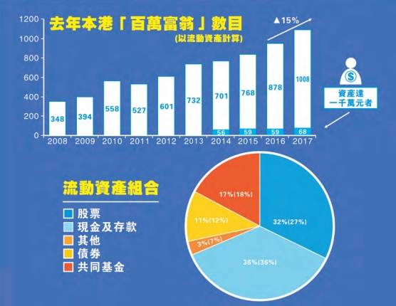 花旗銀行的一項調查發現,去年全港1000萬元或以上流動資產的「千萬富翁」達6.8萬人,即平均每1萬人中就有一位千萬富翁,而百萬富翁的人數更是突破了100萬人,即每7人就有1個百萬富翁。不僅如此,來港旅遊的千萬富翁數量也同樣不容小覷。到底香港的富翁有什麼樣的秘訣獲得財富,又有什麼共同點、什麼樣的區別?今天就讓我們來一探究竟吧!香港商報記者 鄭珊珊