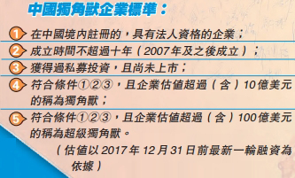【香港商報网訊】昨日上午,中國科技部火炬中心在北京發布《2017年中國獨角獸企業發展報告》和《2017年中關村獨角獸企業發展報告》。《報告》公布了164家獨角獸企業名單,總估值6284億美元(約49337億港元)。其中,螞蟻金服以750億美元估值蟬聯榜首,排名前十的其他公司估值均超過100億美元。從行業分布、數量與估值方面看,互聯網金融行業表現都十分出色。
